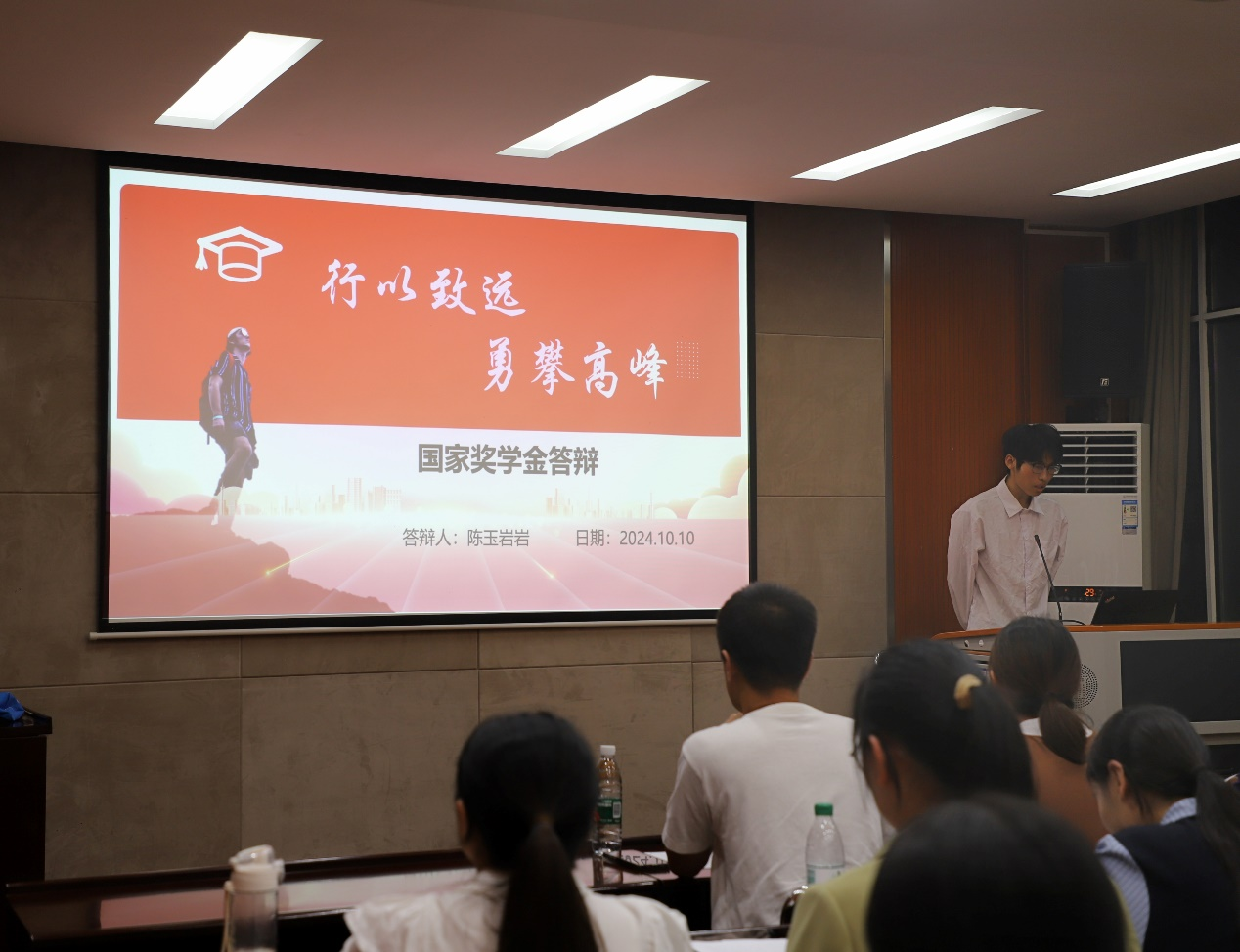 经个人申请、公司审核等环节,共有熊萌萌、陈奕雨等6同学参加了此次答辩。候选人分别从学业成绩、竞赛获奖、思想品德、社会实践与志愿服务等方面进行个人陈述,多角度、多层次展现了公司学子积极进取、全面发展的良好风貌。