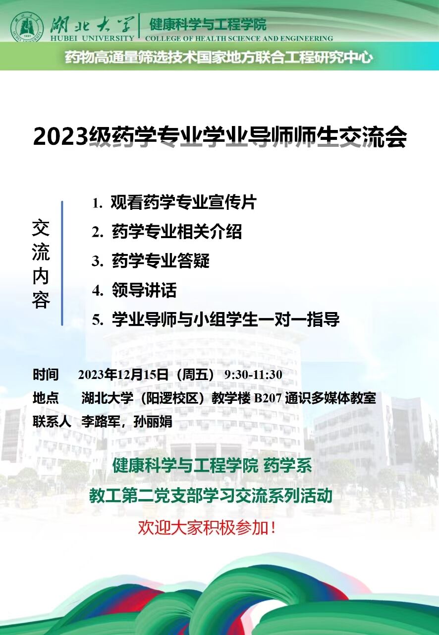 12月15日,2023级药学全体学业导师联合悟空体育教师第二党支部,前往悟空体育阳逻校区(通识教育公司)与2023级药学专业员工开展了面对面的师生交流会。